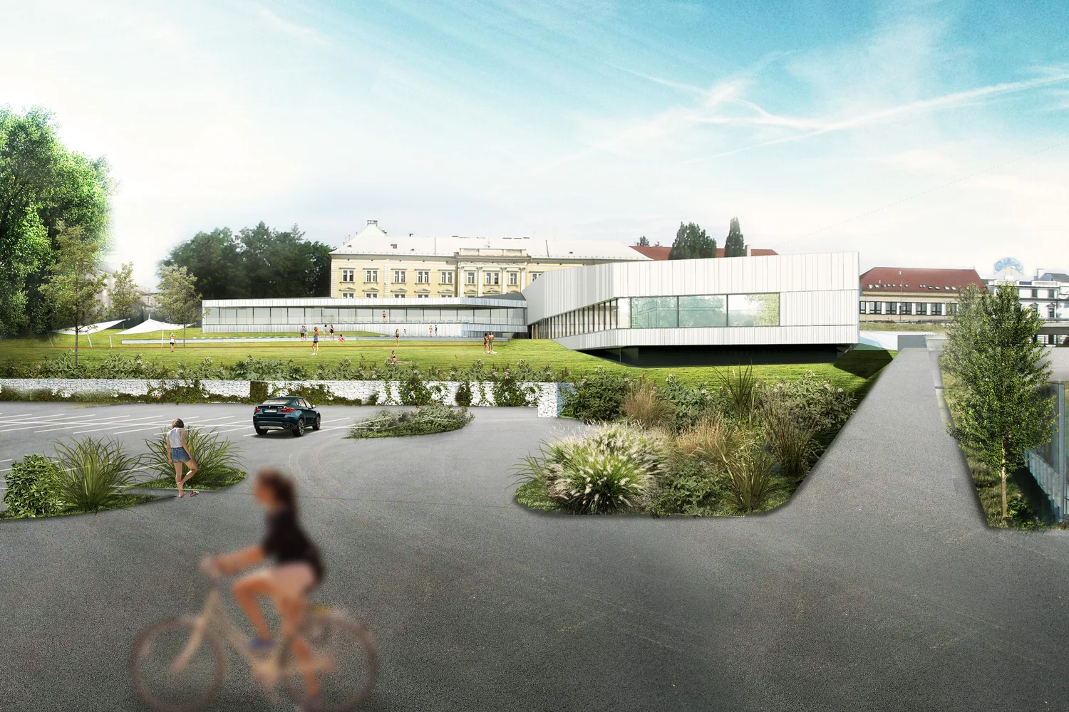 Optimalizáciou dopravného riešenia od ulice Burketova vzniká medzi Lesníckou školou a novým areálom hodnotný verejný park plný zelene.
